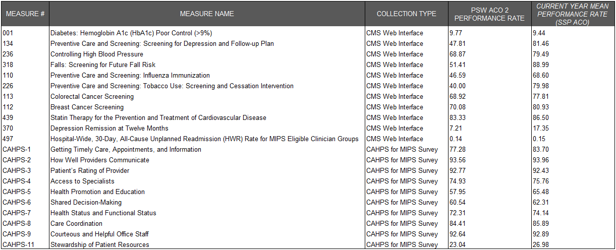 Quality performance results are based on CMS Web Interface Reporting.